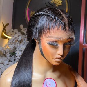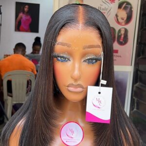 16” Virgin Straight Wig with 5×5 HD closure, 300g of sleek, custom-colored virgin hair for a smooth, natural, and elegant finish.