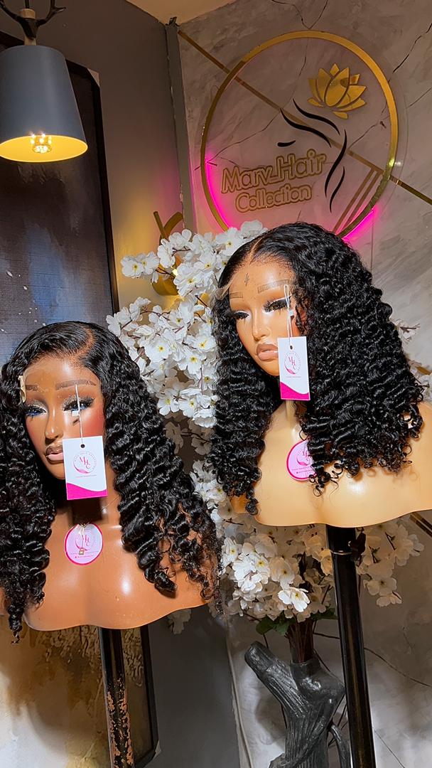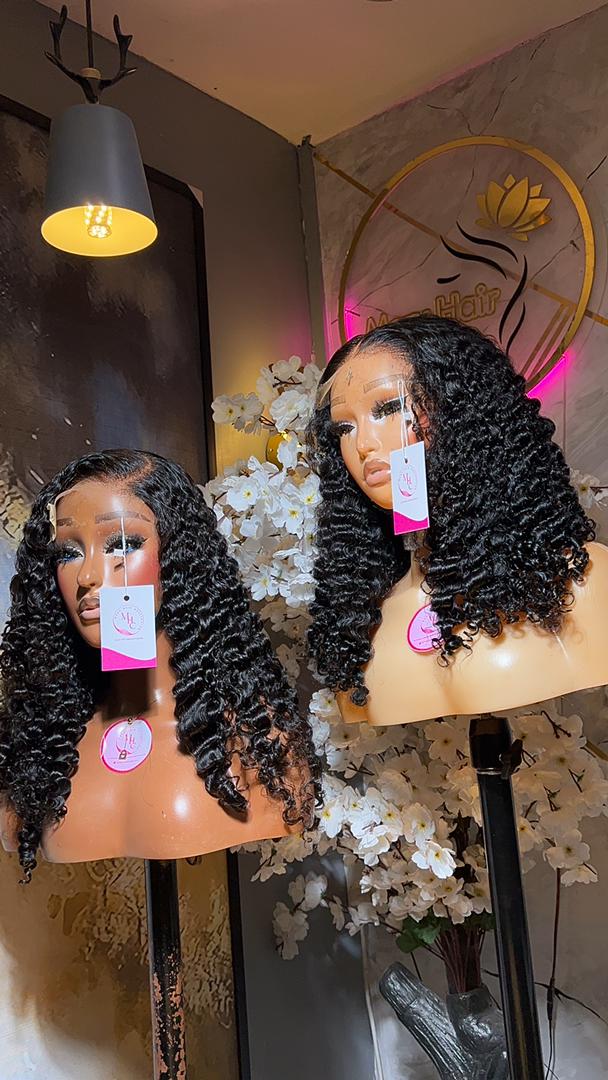 16” Pixie Curls Wig with 5×5 HD closure — 250g of soft, bouncy curls for a natural and lightweight luxury finish.