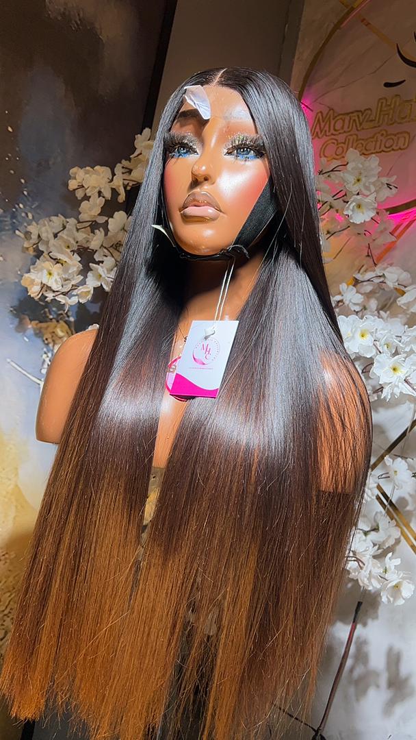 Raw Natural Straight Wig – 28” | Custom Colored | 300g | 2×6 HD Closure