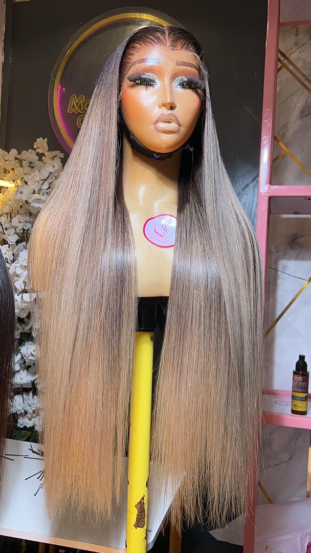Raw Natural Straight Wig – 34” | Brown Tip | 300g | 13×6 HD Frontal