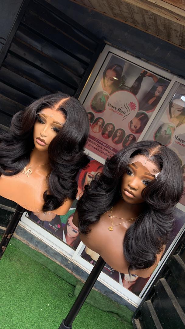 14” Virgin Bounce Wig with 5×5 HD closure — 300g of soft, full virgin hair for a naturally bouncy, elegant, and effortless look.