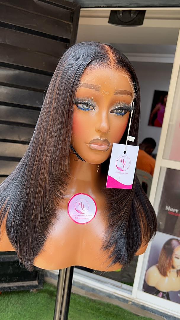 Virgin Straight Wig – 14” | Subtle Highlights | 300g | 5×5 HD Closure