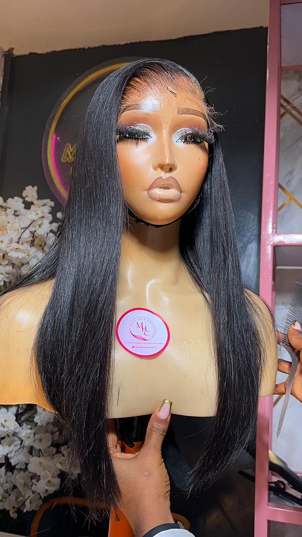 16” Virgin Straight Wig with 5×5 HD closure — 250g of silky, natural virgin hair for a smooth, lightweight, and elegant look.