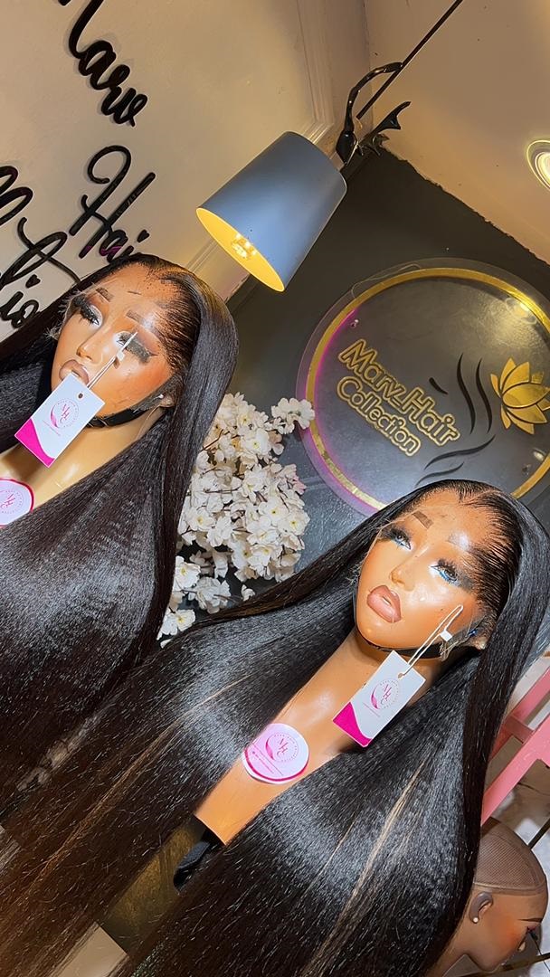 Premium Yaki Straight HD Frontal Wigs, crafted with 100% human hair for a naturally sleek, textured finish.