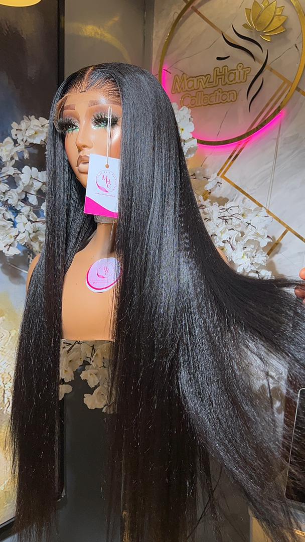 28” Yaki Straight Wig with 7×7 HD closure — 300g of sleek, naturally textured virgin hair for a full, elegant, and ultra-realistic finish.